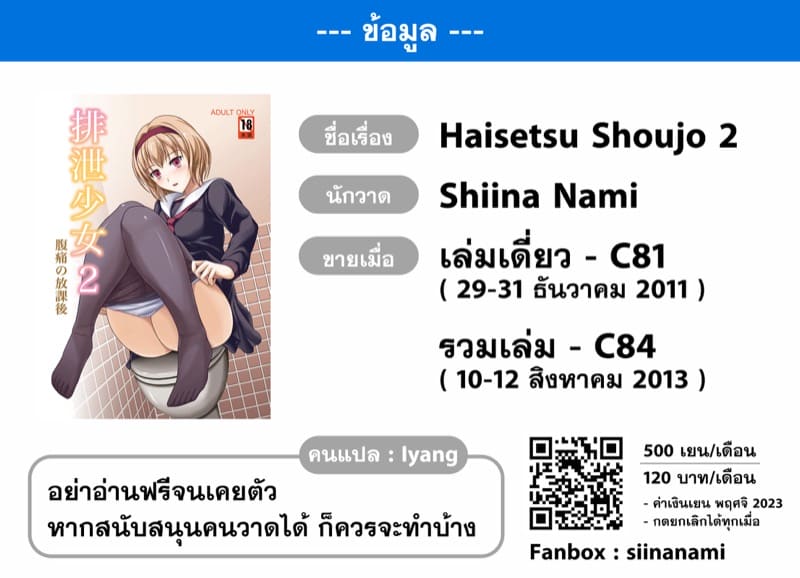 อ่านโดจิน การขับถ่ายของหญิงสาว 2 (C84) [Namiroji (Shiina Nami)] Haisetsu Shoujo 2 Fukutsuu no Houkago (Haisetsu Shoujo Soushuuhen) – อ่านการ์ตูนแปลไทย Doujin thai โดจินแปลไทย อ่านมังงะ18+ โดจินอัพเดทใหม่